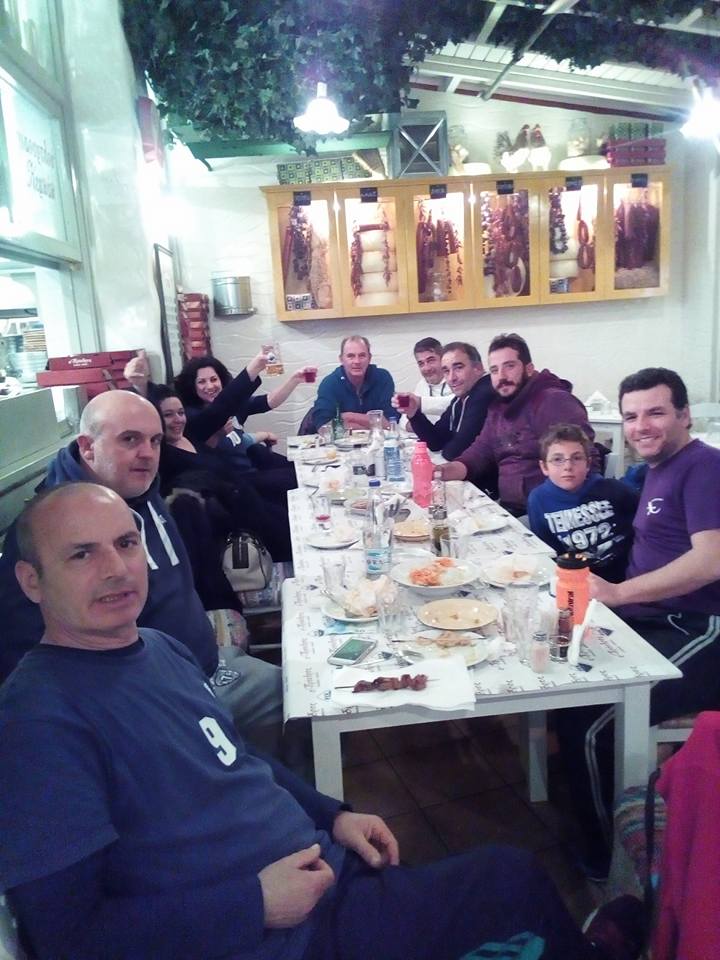 Μετά τη νίκη η αποστολή ξεφάντωσε σε γνωστή κοσμική ταβέρνα (οινοπωτείο) της περιοχής, απολαμβάνοντας τα υπέροχα εδέσματα και άφθονο κρασί. Ο φακός της ιστοσελίδας ήταν εκεί και αποθανάτησε τις στιγμές χαλάρωσης της ομάδος, πρωτοστατούντος του προπονητή και του Γενικού Εφόρου, μαζί με όλους τους παίκτες.